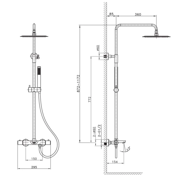 Аэратор, Металлическая розетка, Эксцентрики, Душевой шланг, Душевая лейка, Держатель для душевой лейки, Верхний душ, Кронштейн, Штанга душевая, Термостат