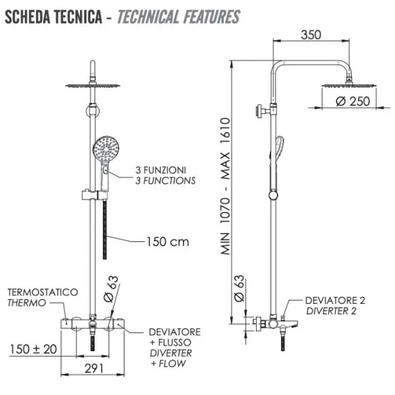 Аэратор, Металлическая розетка, Эксцентрики, Душевой шланг, Душевая лейка, Держатель для душевой лейки, Верхний душ, Кронштейн, Штанга душевая, Термостат