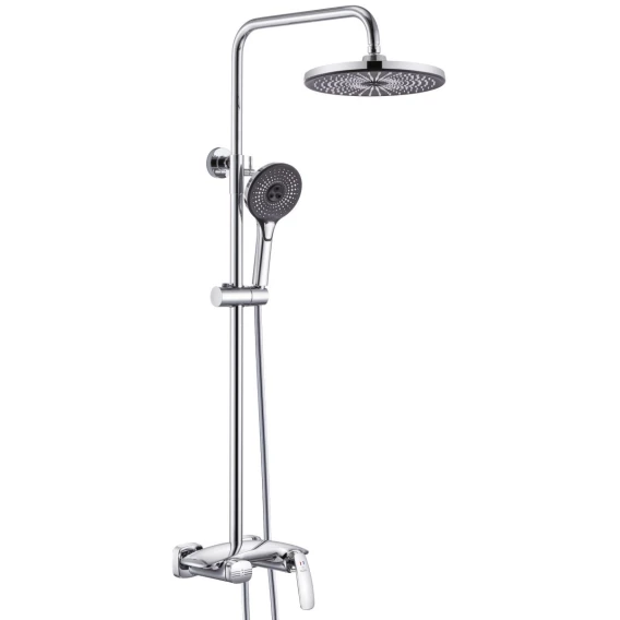 Аэратор, Металлическая розетка, Эксцентрики, Душевой шланг, Душевая лейка, Держатель для душевой лейки, Верхний душ, Смеситель, Кронштейн, Штанга душевая