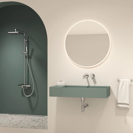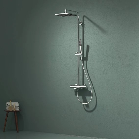 Аэратор, Металлическая розетка, Эксцентрики, Душевой шланг, Душевая лейка, Держатель для душевой лейки, Верхний душ, Кронштейн, Штанга душевая, Термостат