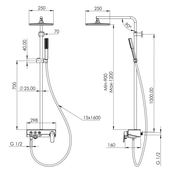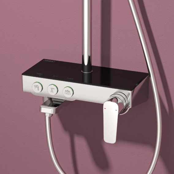 Аэратор, Душевой шланг, Душевая лейка, Держатель для душевой лейки, Полочка, Верхний душ, Смеситель, Кронштейн, Штанга душевая