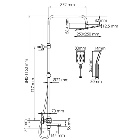 Душевая система 250 мм WasserKRAFT Abens A299.255.130.BM Thermo