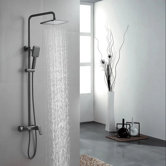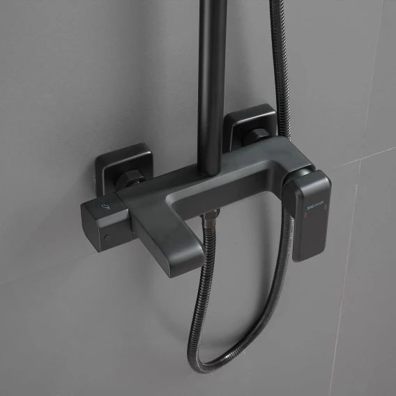 Аэратор, Металлическая розетка, Эксцентрики, Душевой шланг, Душевая лейка, Держатель для душевой лейки, Смеситель, Штанга душевая