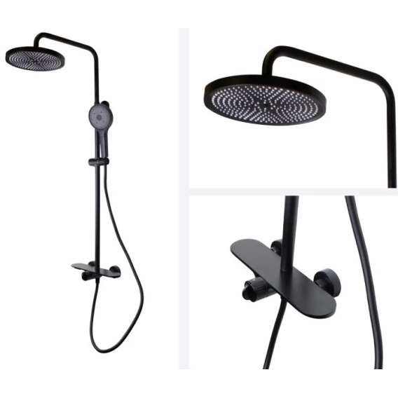 Душевая система Grocenberg GB7005BG 250 мм с термостатом, графит