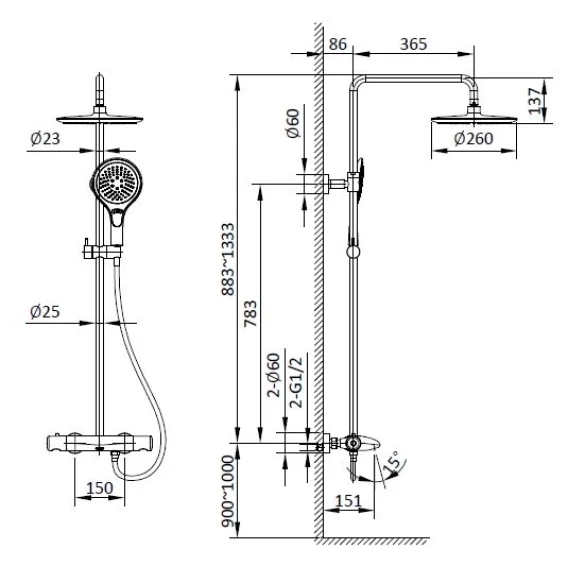 Душевая система 260 мм AltroBagno Squalo 030410 Cr