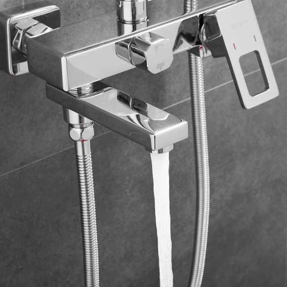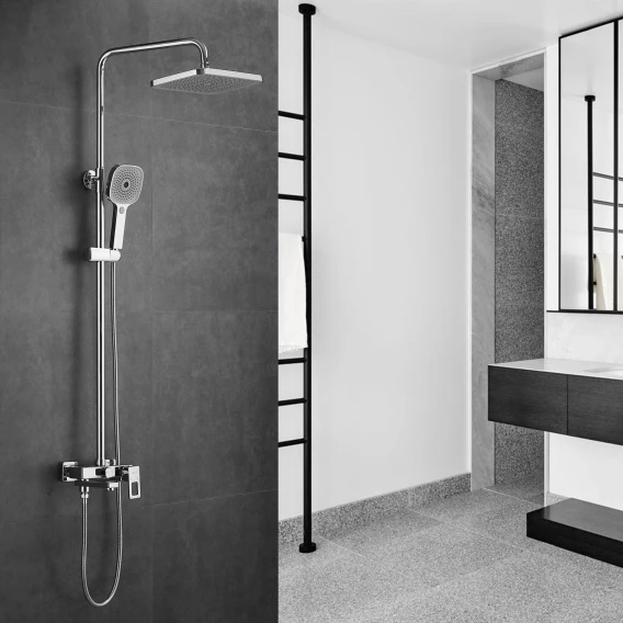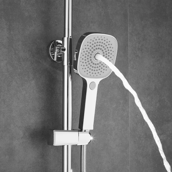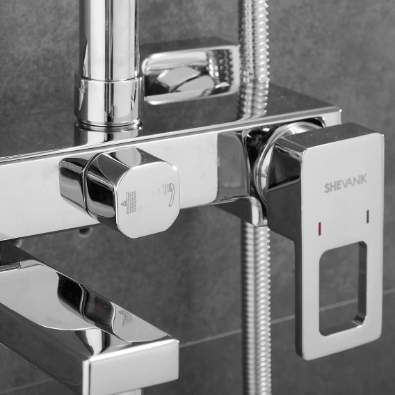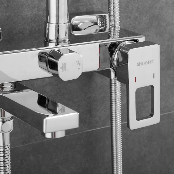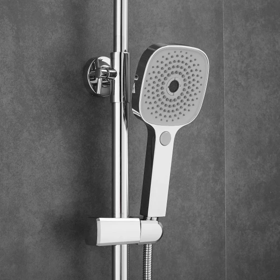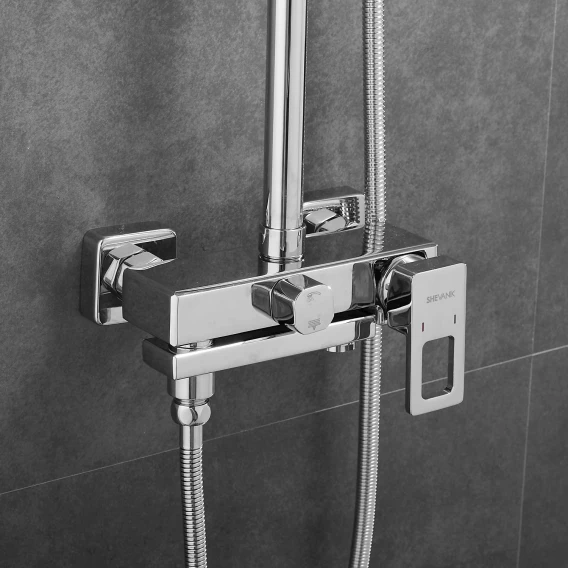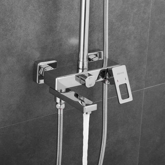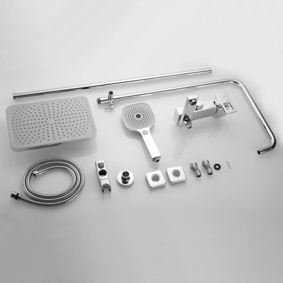 Аэратор, Металлическая розетка, Эксцентрики, Душевой шланг, Душевая лейка, Держатель для душевой лейки, Верхний душ, Смеситель, Кронштейн, Штанга душевая