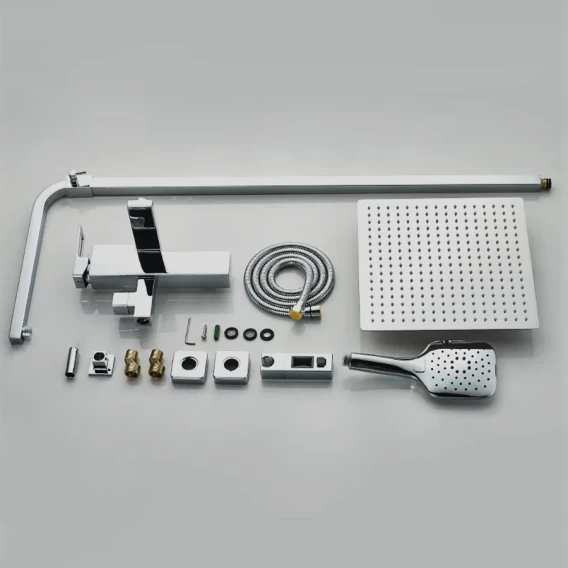 Аэратор, Металлическая розетка, Эксцентрики, Душевой шланг, Душевая лейка, Держатель для душевой лейки, Верхний душ, Смеситель, Кронштейн, Штанга душевая