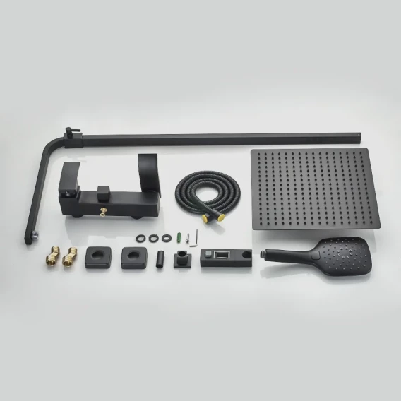 Аэратор, Металлическая розетка, Эксцентрики, Душевой шланг, Душевая лейка, Держатель для душевой лейки, Верхний душ, Смеситель, Кронштейн, Штанга душевая
