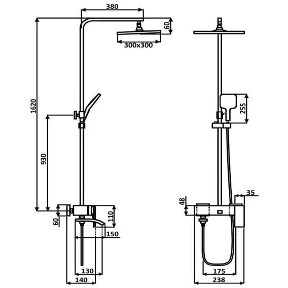 Душевая система 300 мм ALMAes Turia SDI-1808