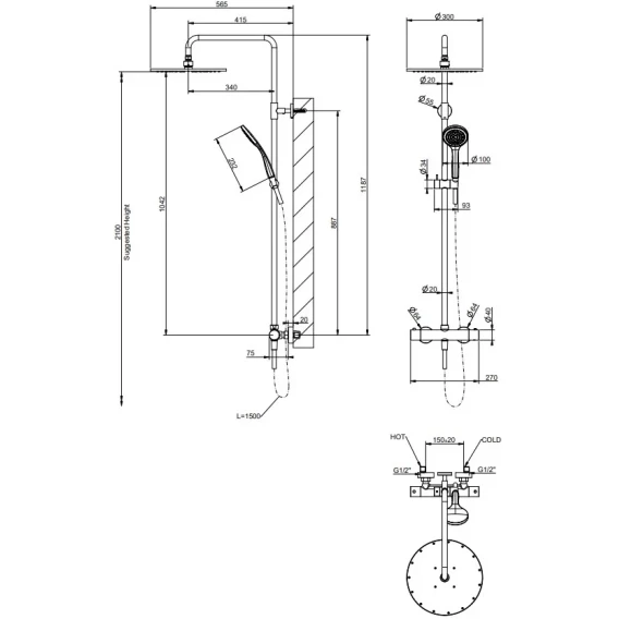 Металлическая розетка, Эксцентрики, Душевой шланг, Душевая лейка, Держатель для душевой лейки, Верхний душ, Кронштейн, Штанга душевая, Термостат