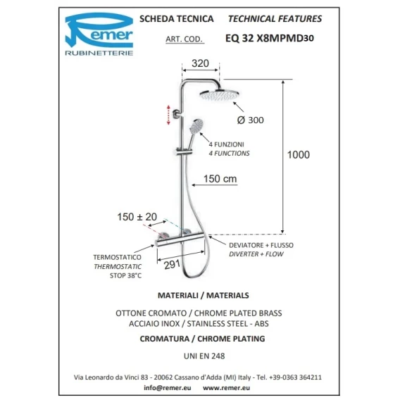 Душевая система 300 мм Remer Elegance EQ32X8MPMD30NO