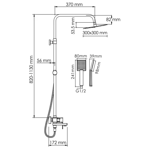 Душевая система 300 мм WasserKRAFT A177.118.141.010.CH