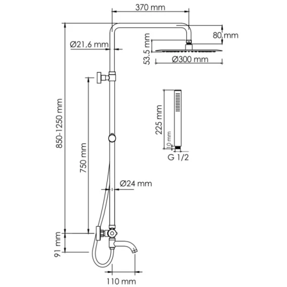 • Стойка для душа, Ø 22 мм регулируемая по высоте