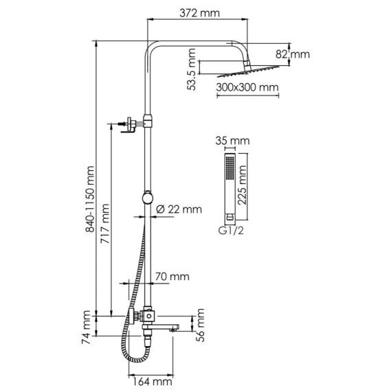 • Стойка для душа, Ø 22 мм регулируемая по высоте
