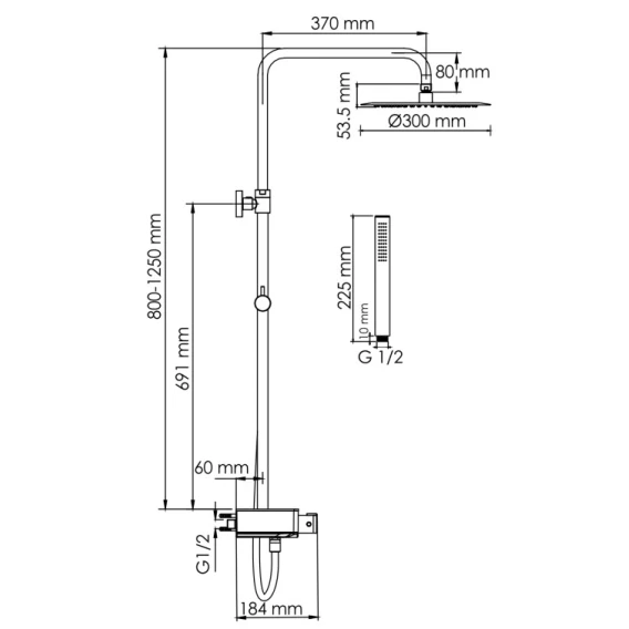 Душевая система 300 мм WasserKRAFT Abens A114.160.217.CB Thermo