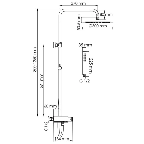 Душевая система 300 мм WasserKRAFT Abens A114.160.217.CB Thermo