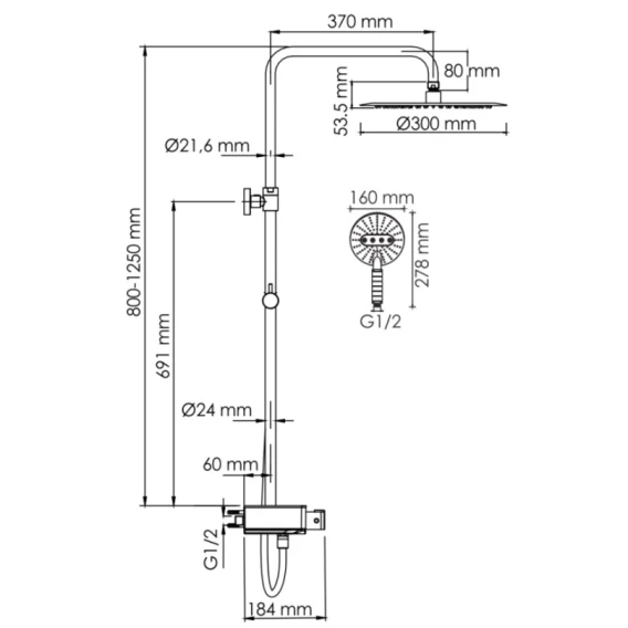 • Стойка для душа, Ø 24 мм регулируемая по высоте
