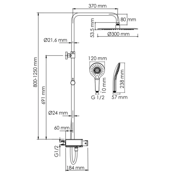 • Стойка для душа, Ø 24 мм регулируемая по высоте