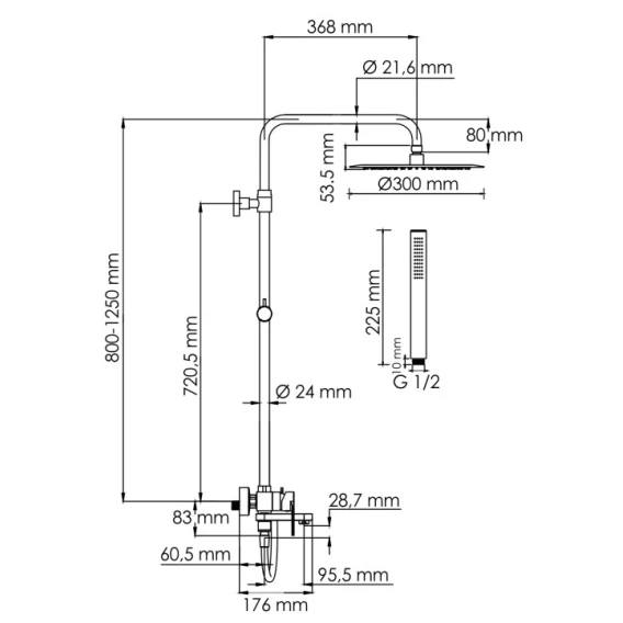 • Стойка для душа, Ø 24 мм регулируемая по высоте