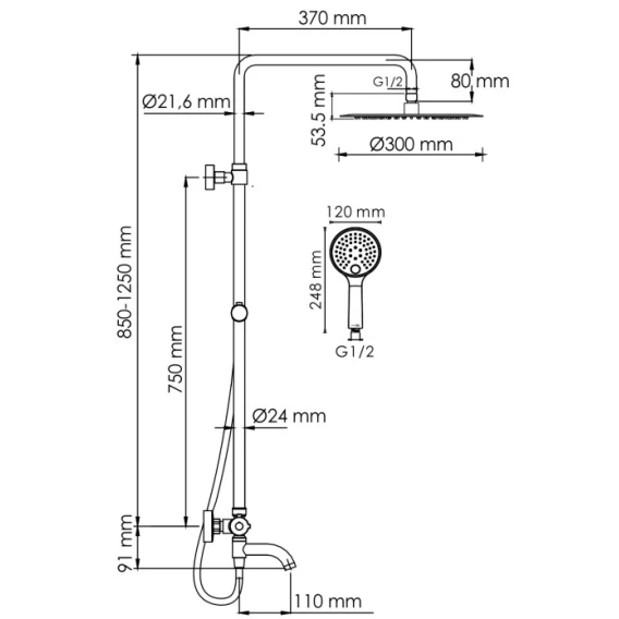 • Стойка для душа, Ø 22 мм регулируемая по высоте