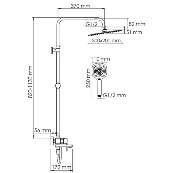 Душевая система 300x200 мм WasserKRAFT A177.069.065.087.CH