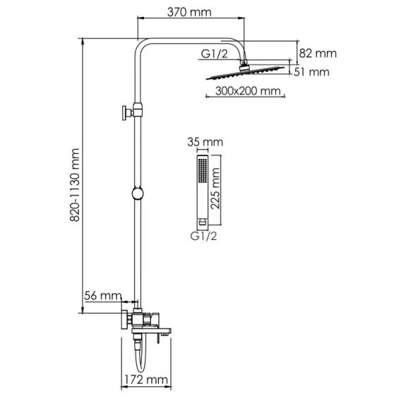 Душевая система 300x200 мм WasserKRAFT A177.069.103.087.CH