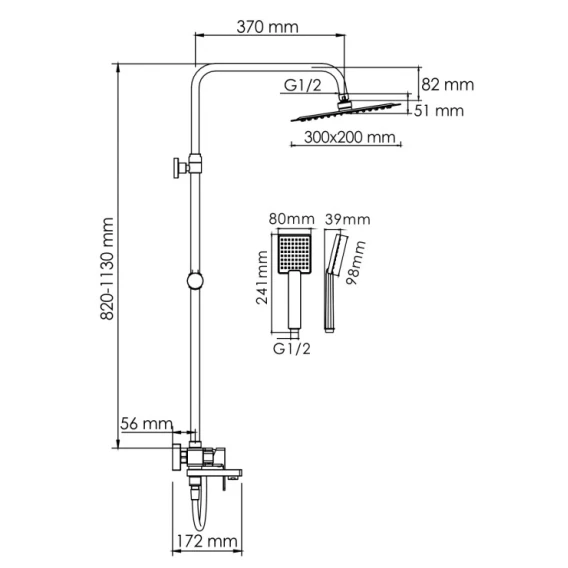 Душевая система 300x200 мм WasserKRAFT A177.069.141.087.CH