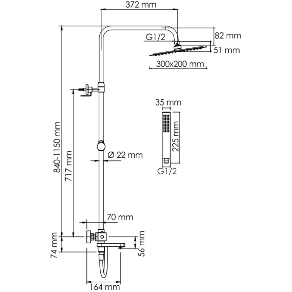 • Стойка для душа, Ø 22 мм регулируемая по высоте