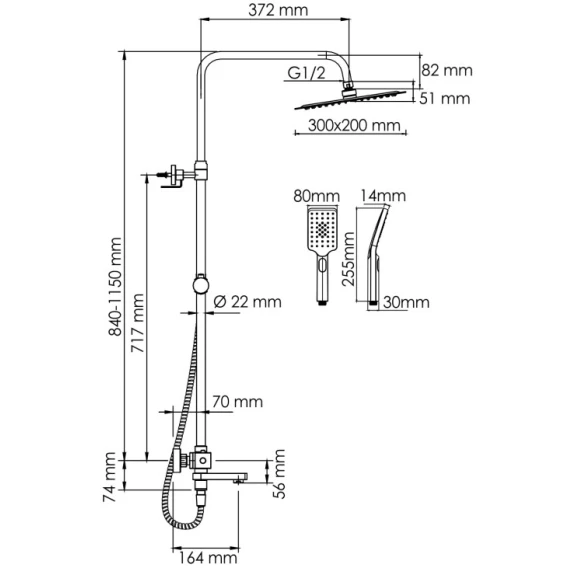 • Стойка для душа, Ø 22 мм регулируемая по высоте