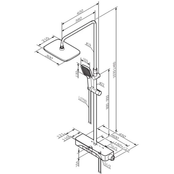 Аэратор, Эксцентрики, Душевой шланг, Душевая лейка, Держатель для душевой лейки, Полочка, Верхний душ, Кронштейн, Штанга душевая, Термостат