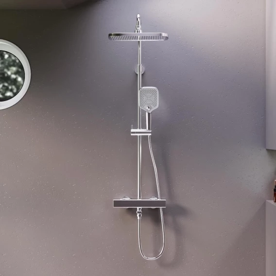 Аэратор, Металлическая розетка, Эксцентрики, Душевой шланг, Душевая лейка, Держатель для душевой лейки, Верхний душ, Кронштейн, Штанга душевая, Термостат