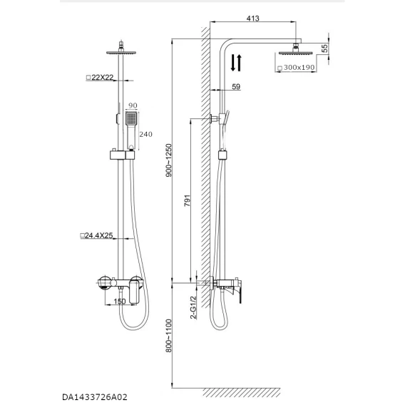 Душевая система 300x190 мм D&K Berlin.Steinbeis DA1433726A02