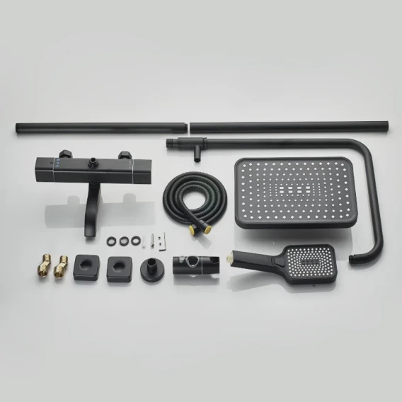 Аэратор, Металлическая розетка, Эксцентрики, Душевой шланг, Душевая лейка, Держатель для душевой лейки, Верхний душ, Кронштейн, Штанга душевая, Термостат