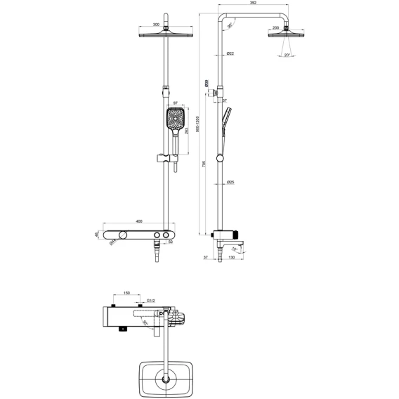Душевая система 300x200 мм Cersanit Vivo A64089