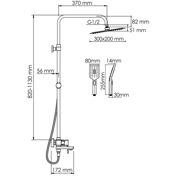Душевая система 300x200 мм WasserKRAFT A177.069.126.010.CH