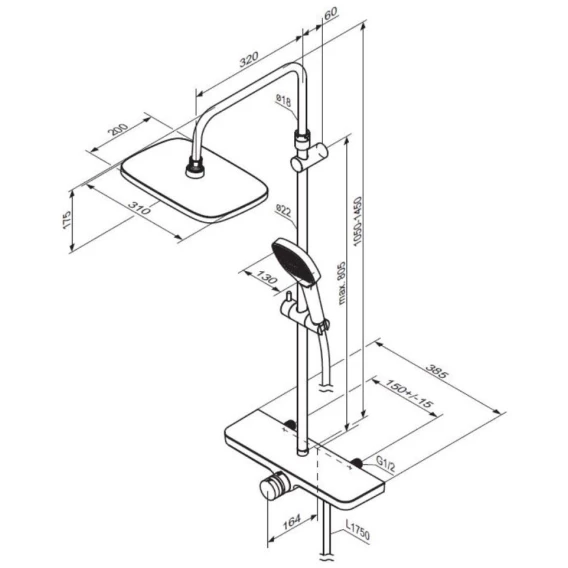 Душевая система 310x200 мм Damixa Merkur 940730300