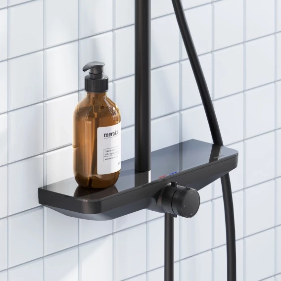 Душевой шланг, Душевая лейка, Держатель для душевой лейки, Полочка, Верхний душ, Смеситель, Кронштейн, Штанга душевая