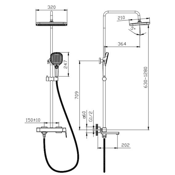 Аэратор, Металлическая розетка, Эксцентрики, Душевой шланг, Душевая лейка, Держатель для душевой лейки, Верхний душ, Смеситель, Кронштейн, Штанга душевая