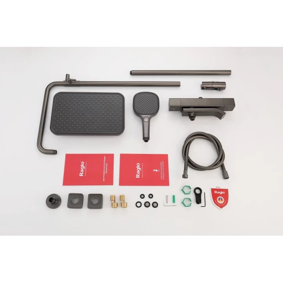 Аэратор, Металлическая розетка, Эксцентрики, Душевой шланг, Душевая лейка, Держатель для душевой лейки, Верхний душ, Кронштейн, Штанга душевая, Термостат