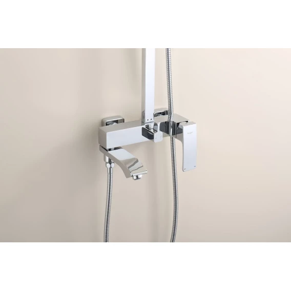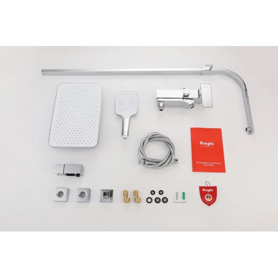 Аэратор, Металлическая розетка, Эксцентрики, Душевой шланг, Душевая лейка, Держатель для душевой лейки, Верхний душ, Смеситель, Кронштейн, Штанга душевая
