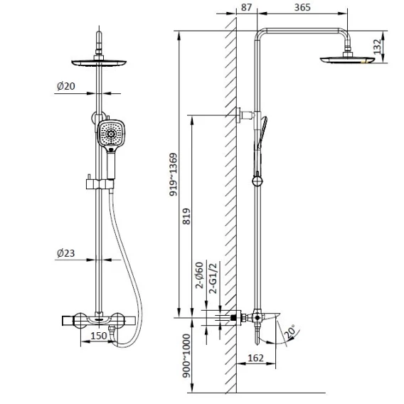 Аэратор, Металлическая розетка, Эксцентрики, Душевой шланг, Душевая лейка, Держатель для душевой лейки, Верхний душ, Кронштейн, Штанга душевая, Термостат