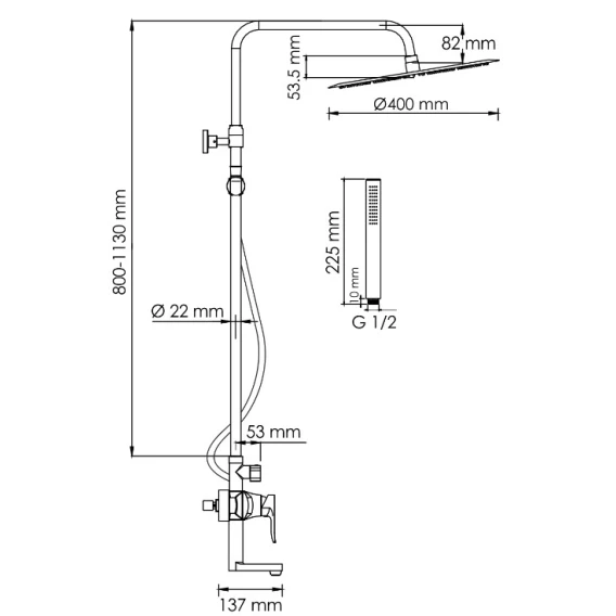 • Стойка для душа, Ø 22 мм регулируемая по высоте
