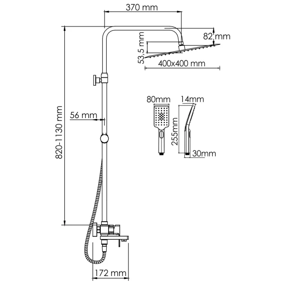 Душевая система 400 мм WasserKRAFT A177.119.126.010.CH
