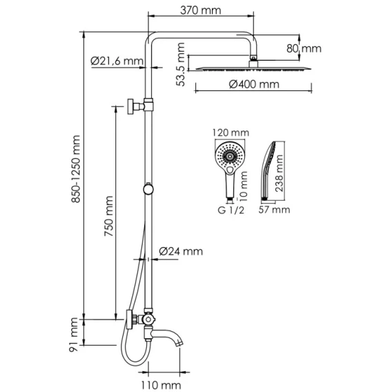 • Стойка для душа, Ø 22 мм регулируемая по высоте