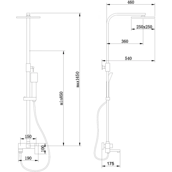 Душевая система Abber Daheim AF8216NGL 250 мм, со смесителем, никель