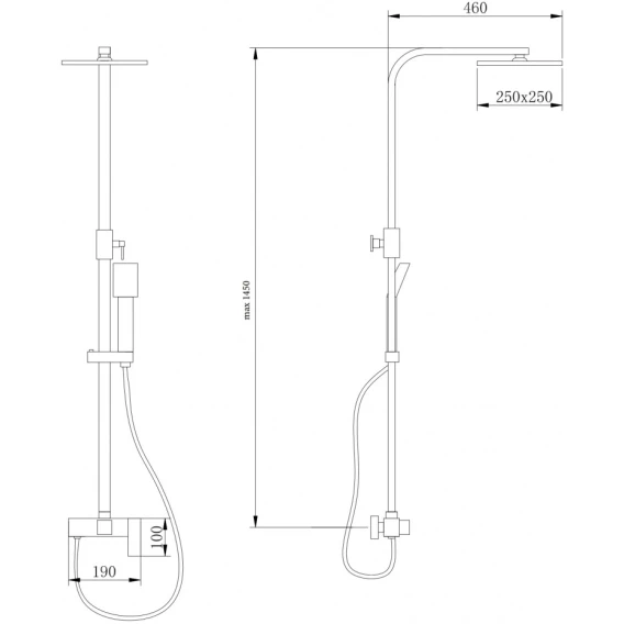 Металлическая розетка, Эксцентрики, Душевой шланг, Душевая лейка, Держатель для душевой лейки, Верхний душ, Смеситель, Кронштейн, Штанга душевая