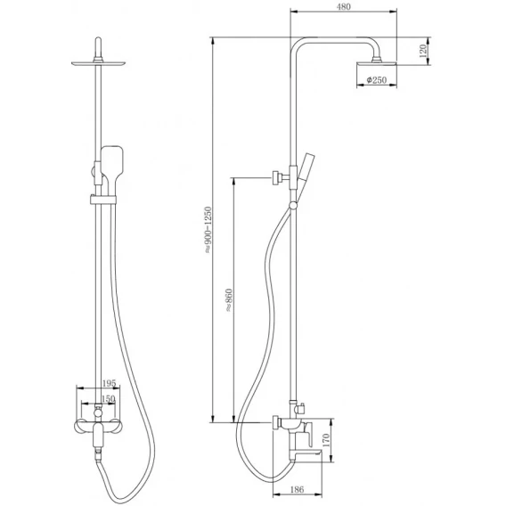 Аэратор, Металлическая розетка, Эксцентрики, Душевой шланг, Душевая лейка, Держатель для душевой лейки, Верхний душ, Смеситель, Кронштейн, Штанга душевая