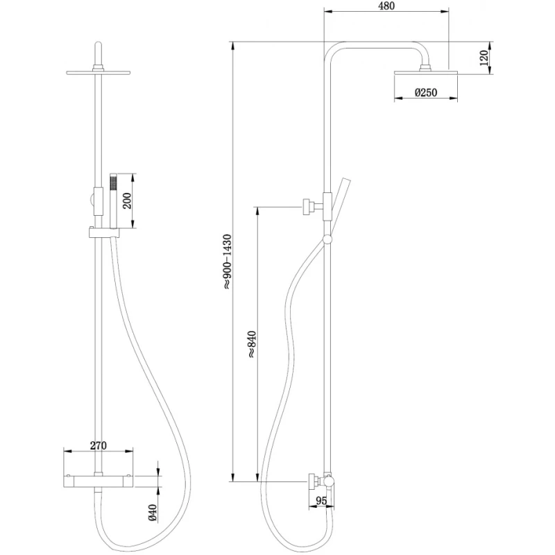 Металлическая розетка, Эксцентрики, Душевой шланг, Душевая лейка, Держатель для душевой лейки, Верхний душ, Кронштейн, Штанга душевая, Термостат