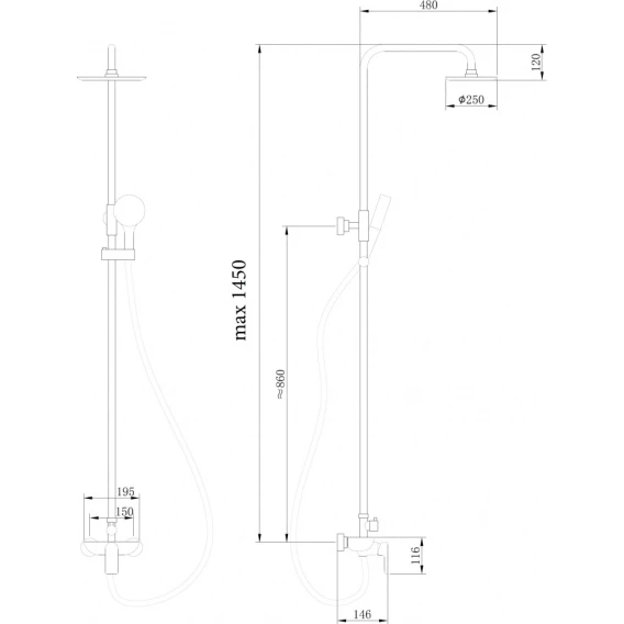 Металлическая розетка, Эксцентрики, Душевой шланг, Душевая лейка, Держатель для душевой лейки, Верхний душ, Смеситель, Кронштейн, Штанга душевая