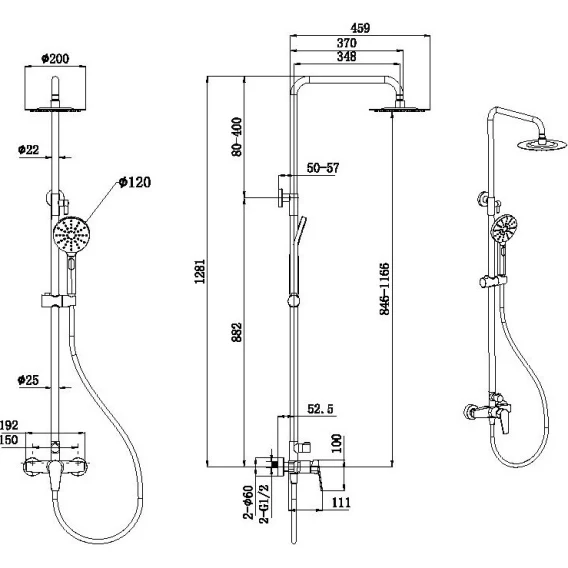 Металлическая розетка, Эксцентрики, Душевой шланг, Душевая лейка, Держатель для душевой лейки, Верхний душ, Смеситель, Кронштейн, Штанга душевая